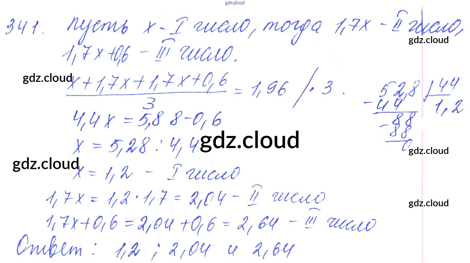 Ответ на задание 341 Дидактические материалы Математика за 5 (пятый) класс Чесноков, Нешков 2014