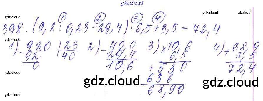 Ответ на задание 398 Дидактические материалы Математика за 5 (пятый) класс Чесноков, Нешков 2014
