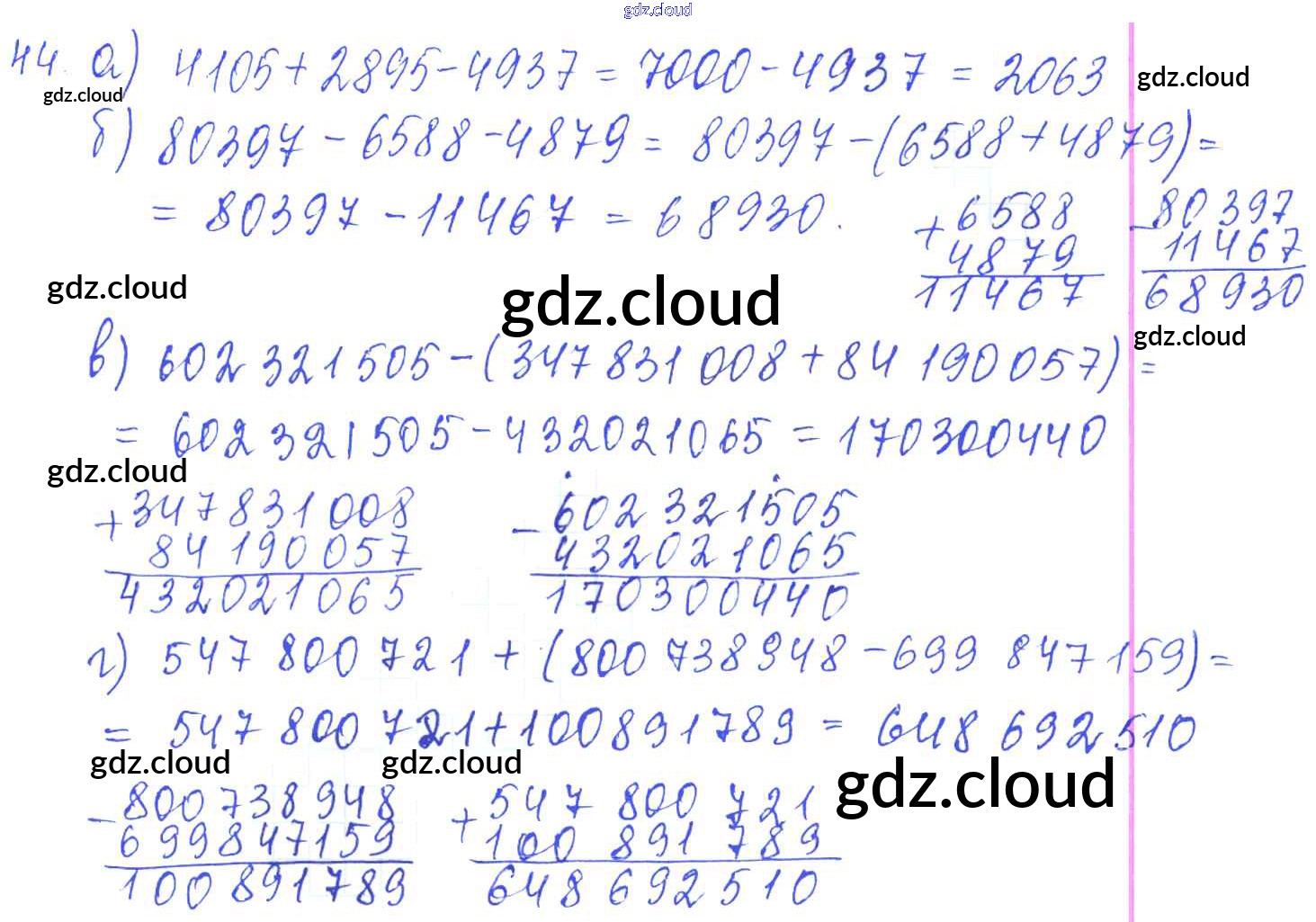 Ответ на задание 44 Дидактические материалы Математика за 5 (пятый) класс Чесноков, Нешков 2014