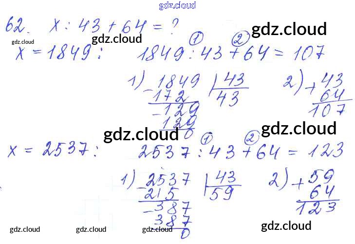 Ответ на задание 62 Дидактические материалы Математика за 5 (пятый) класс Чесноков, Нешков 2014