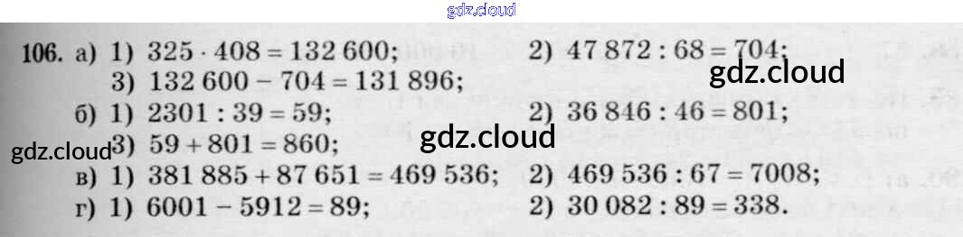 Ответ на задание 106 Дидактические материалы Математика за 5 (пятый) класс Чесноков, Нешков 2014