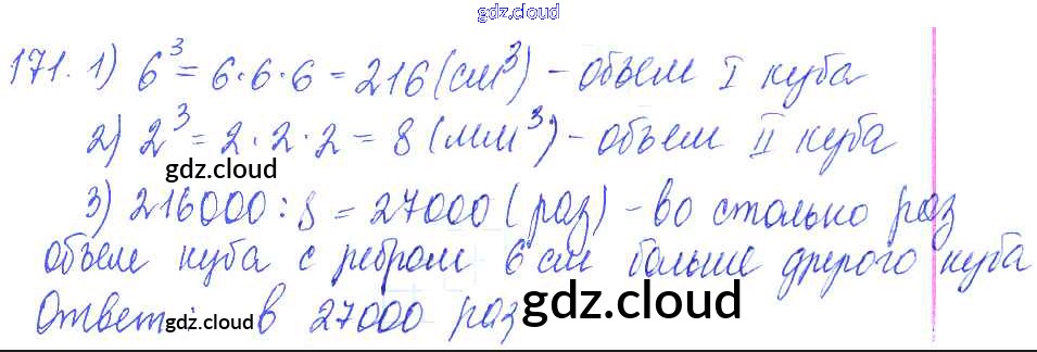 Ответ на задание 171 Дидактические материалы Математика за 5 (пятый) класс Чесноков, Нешков 2014