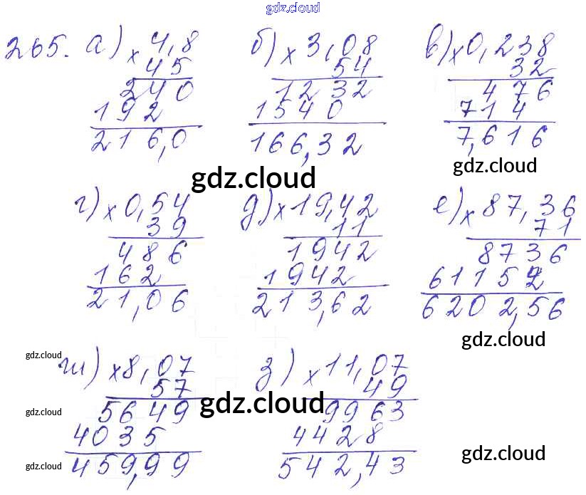 Ответ на задание 265 Дидактические материалы Математика за 5 (пятый) класс Чесноков, Нешков 2014