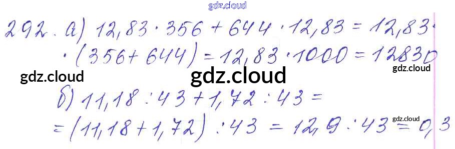 Ответ на задание 292 Дидактические материалы Математика за 5 (пятый) класс Чесноков, Нешков 2014