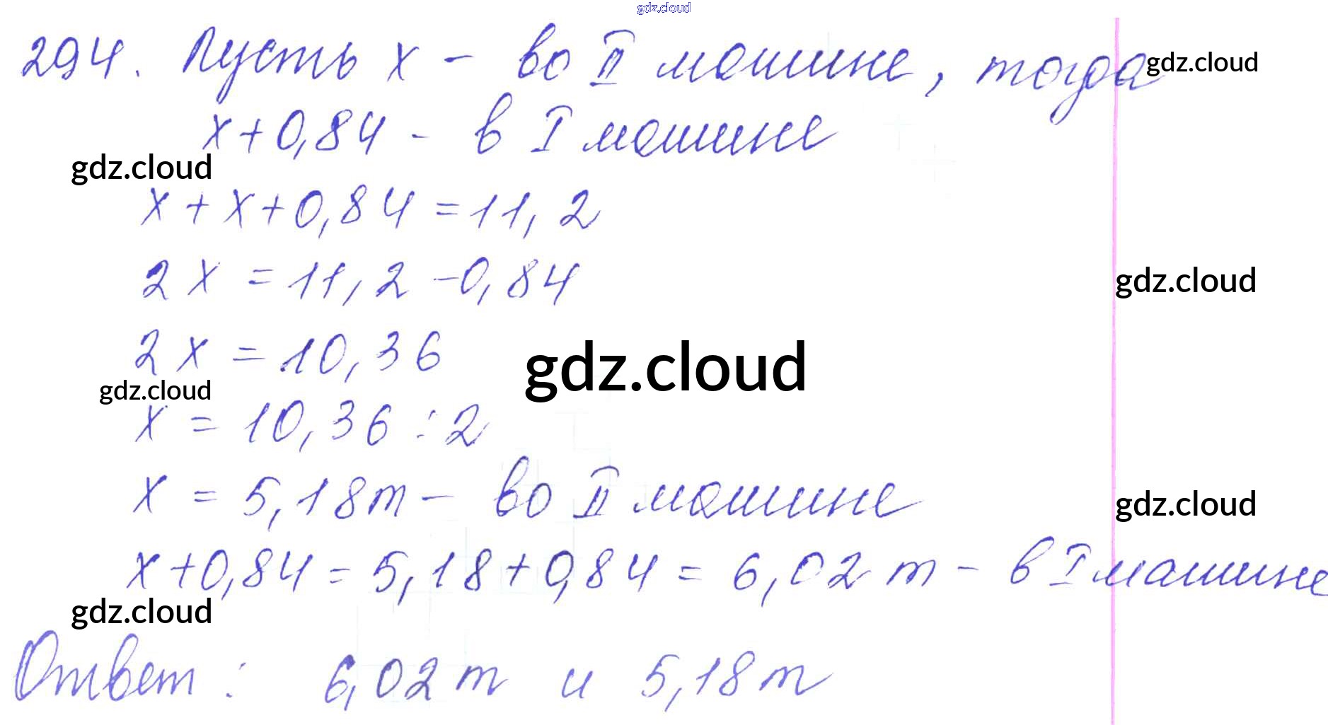 Ответ на задание 294 Дидактические материалы Математика за 5 (пятый) класс Чесноков, Нешков 2014