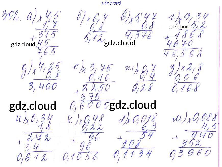 Ответ на задание 302 Дидактические материалы Математика за 5 (пятый) класс Чесноков, Нешков 2014