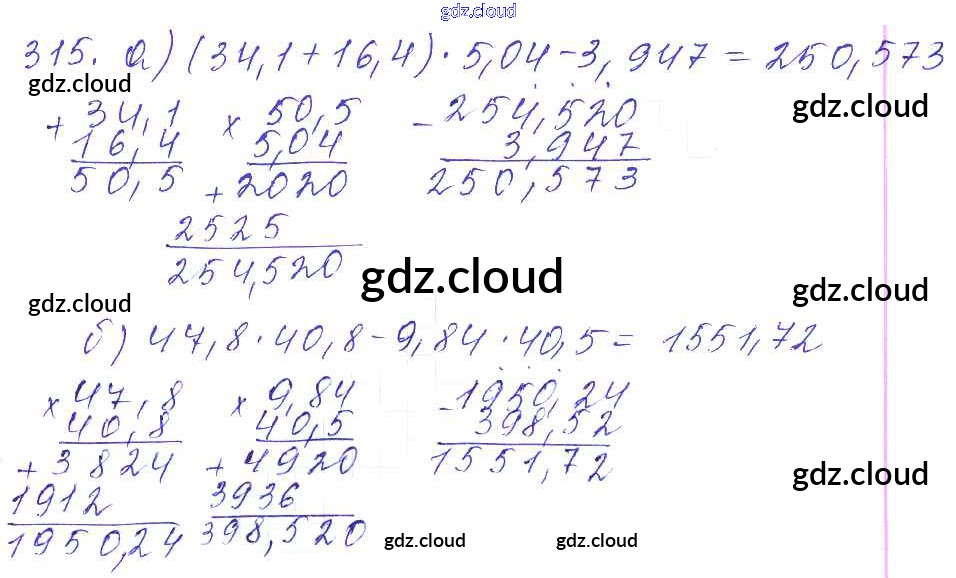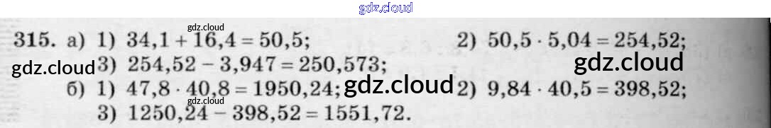 Ответ на задание 315 Дидактические материалы Математика за 5 (пятый) класс Чесноков, Нешков 2014