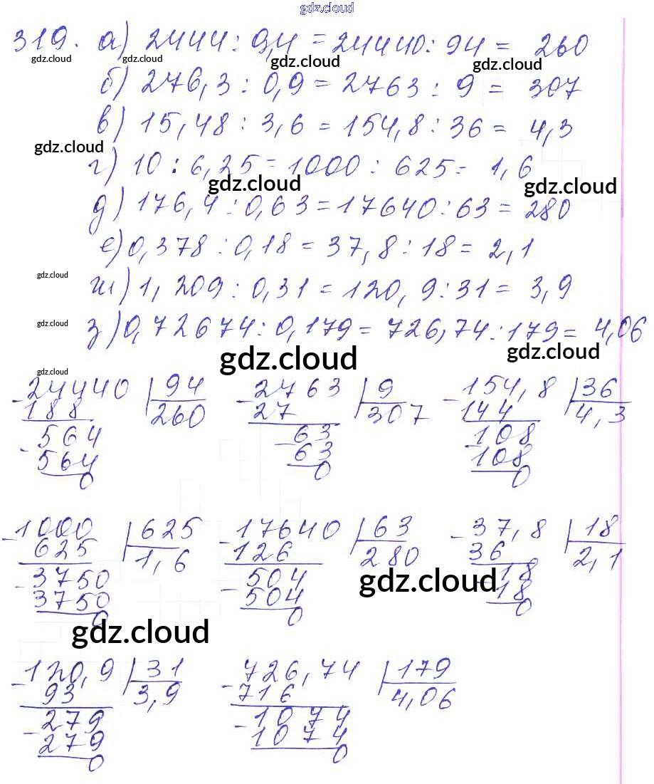 Ответ на задание 319 Дидактические материалы Математика за 5 (пятый) класс Чесноков, Нешков 2014