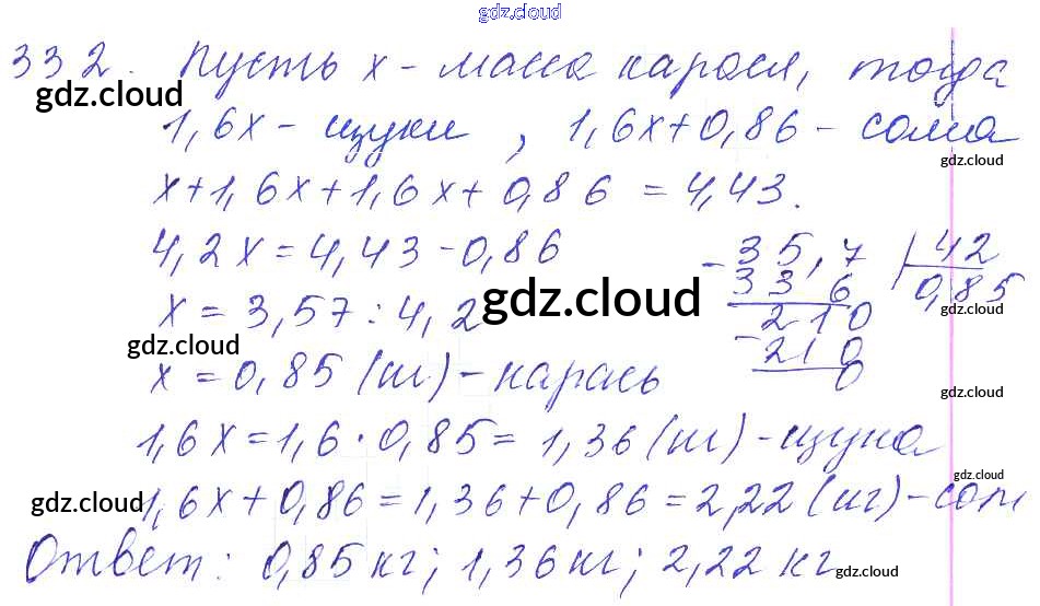 Ответ на задание 332 Дидактические материалы Математика за 5 (пятый) класс Чесноков, Нешков 2014