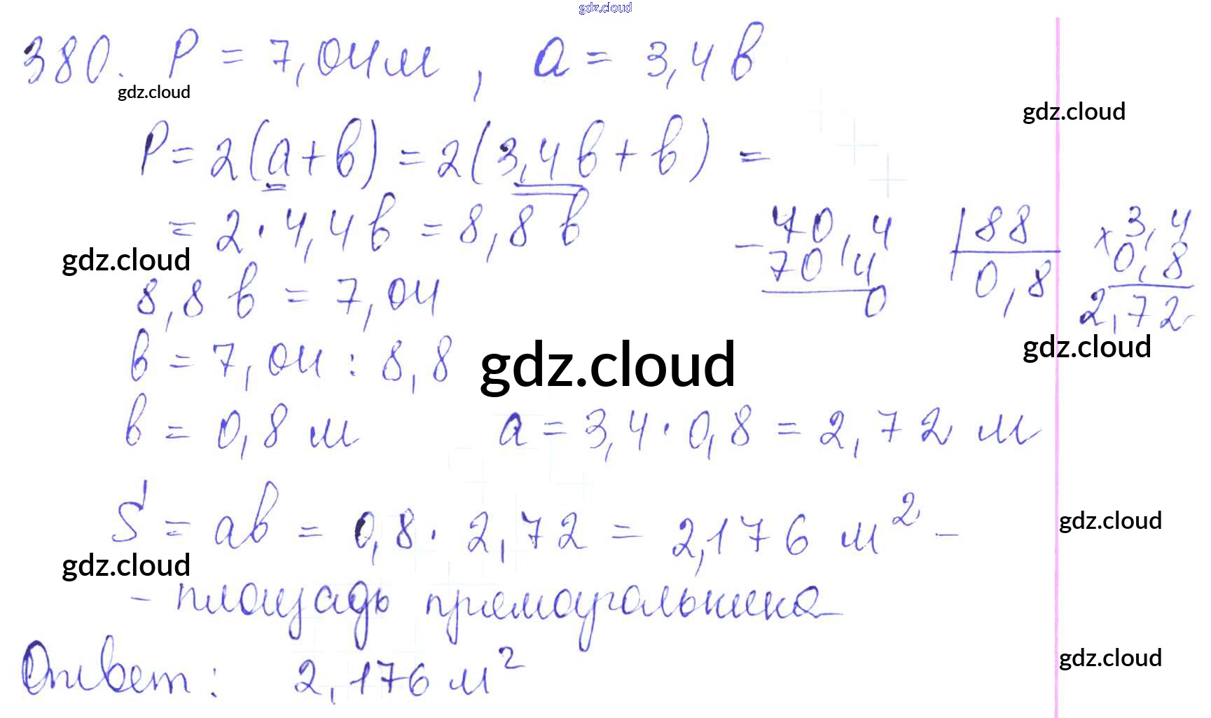 Ответ на задание 380 Дидактические материалы Математика за 5 (пятый) класс Чесноков, Нешков 2014