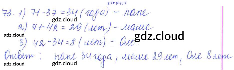 Ответ на задание 73 Дидактические материалы Математика за 5 (пятый) класс Чесноков, Нешков 2014