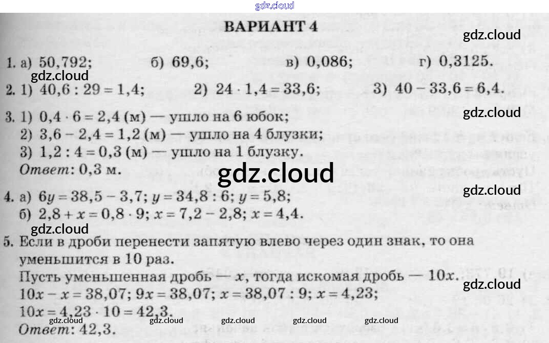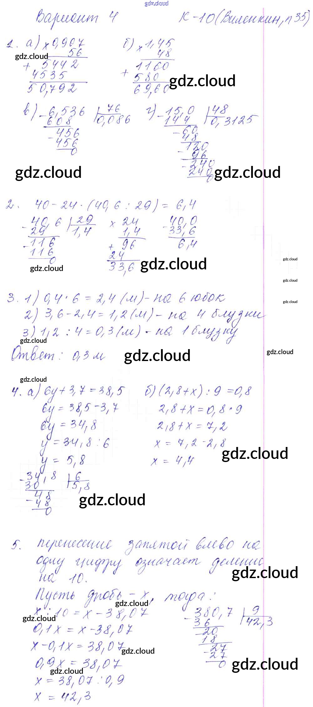КР-10. Варианты Ответы к Контрольным работам к Виленкину по Математике 5 класс Дидактические материалы Чесноков    Академкнига