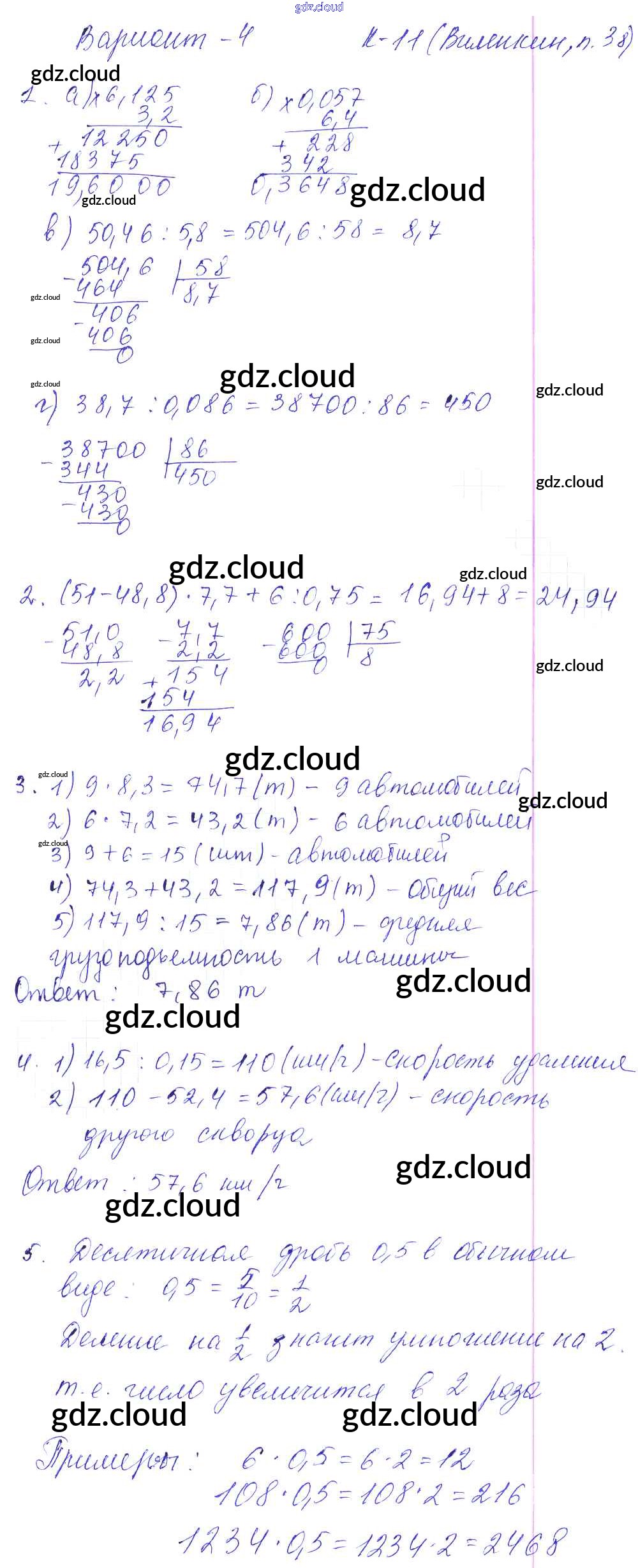 КР-11. Варианты Ответы к Контрольным работам к Виленкину по Математике 5 класс Дидактические материалы Чесноков    Академкнига