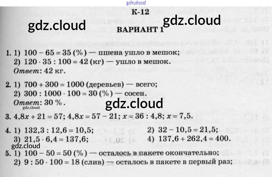 КР-12. Варианты Ответы к Контрольным работам к Виленкину по Математике 5 класс Дидактические материалы Чесноков    Академкнига