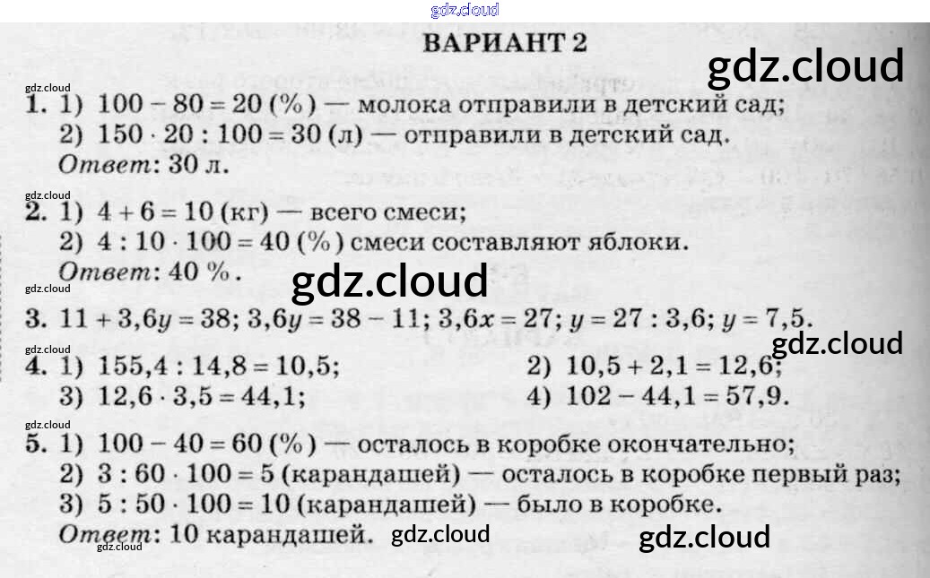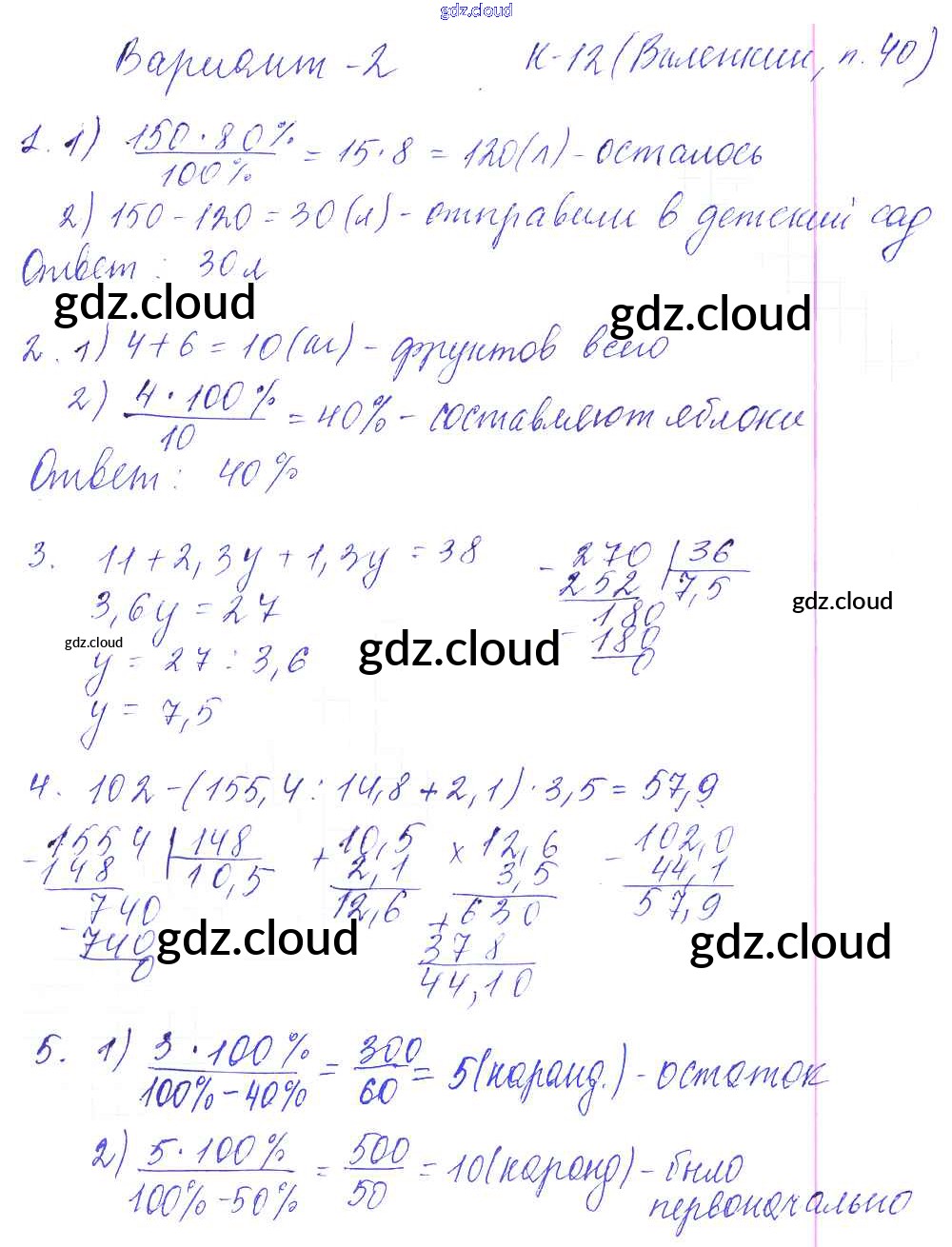 КР-12. Варианты Ответы к Контрольным работам к Виленкину по Математике 5 класс Дидактические материалы Чесноков    Академкнига