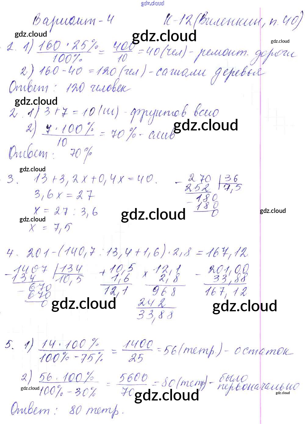 КР-12. Варианты Ответы к Контрольным работам к Виленкину по Математике 5 класс Дидактические материалы Чесноков    Академкнига