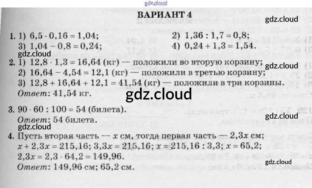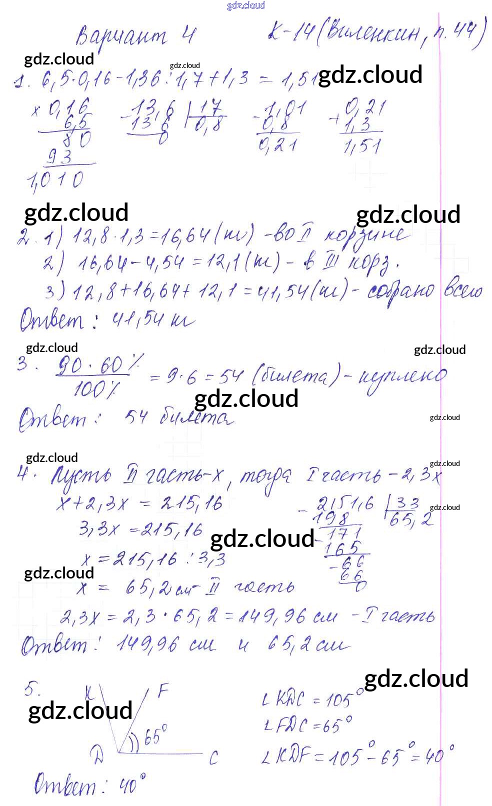 КР-14. Варианты Ответы к Контрольным работам к Виленкину по Математике 5 класс Дидактические материалы Чесноков    Академкнига