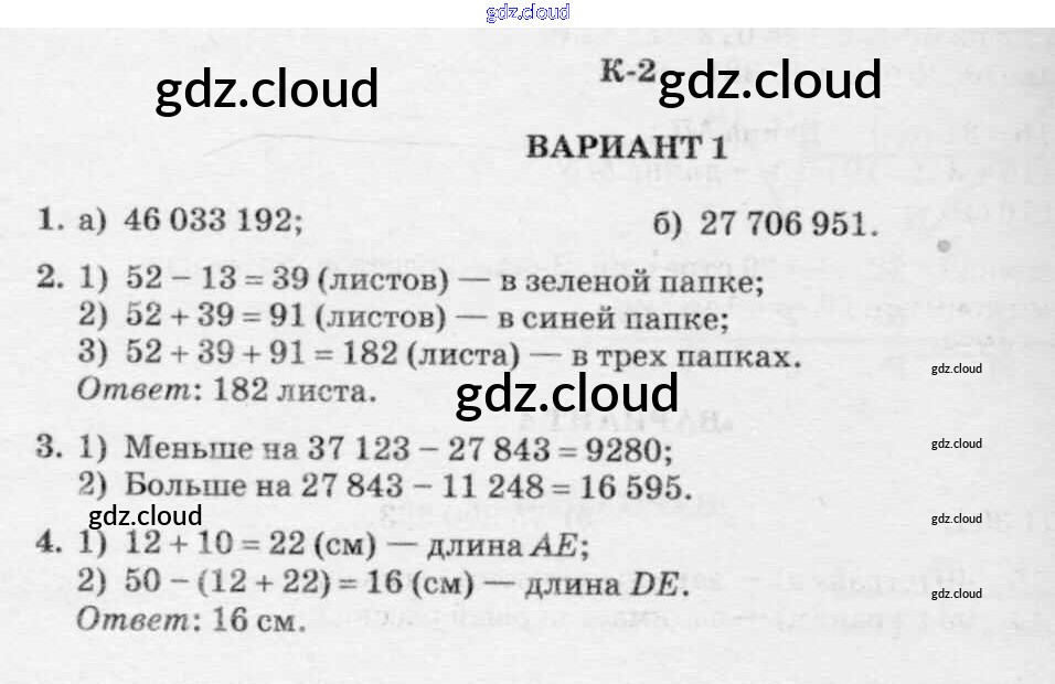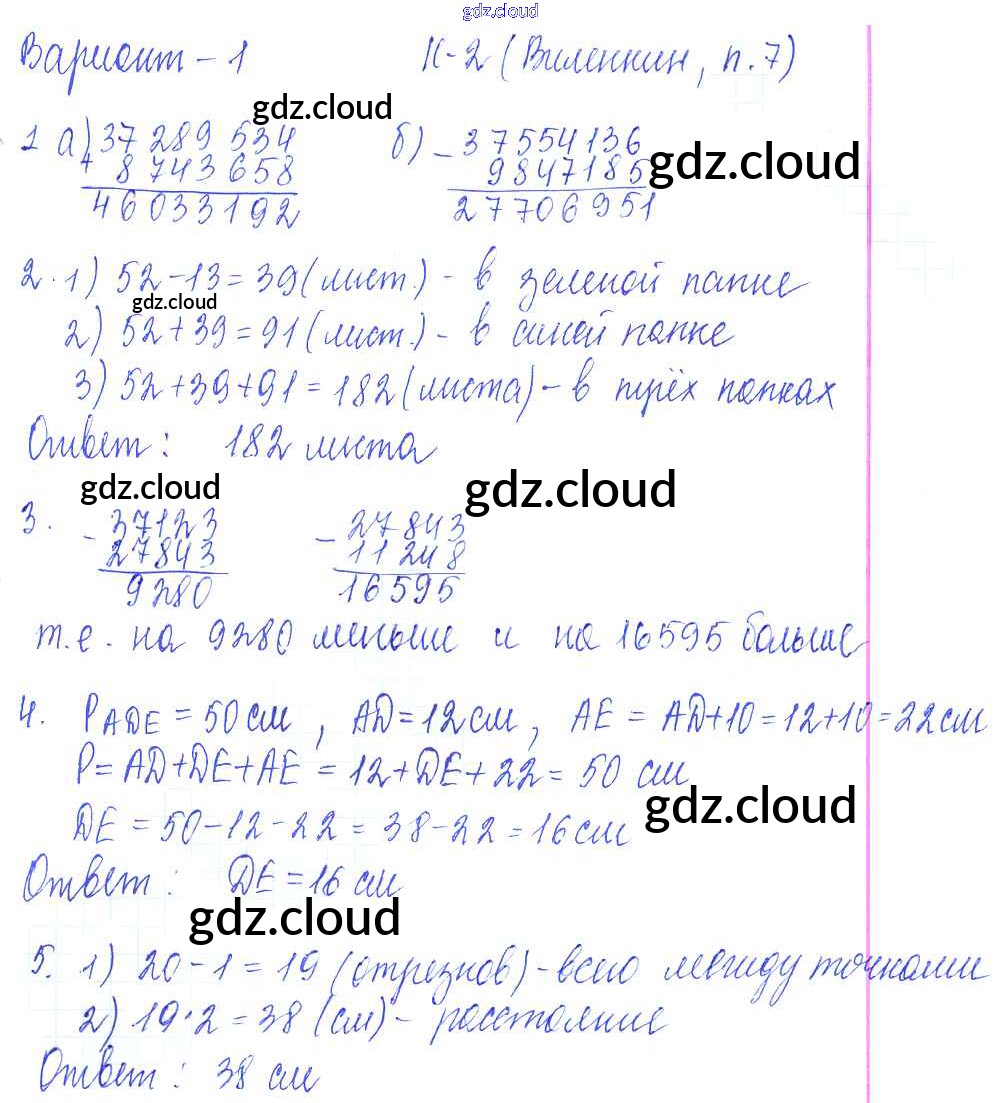 КР-2. Варианты Ответы к Контрольным работам к Виленкину по Математике 5 класс Дидактические материалы Чесноков    Академкнига