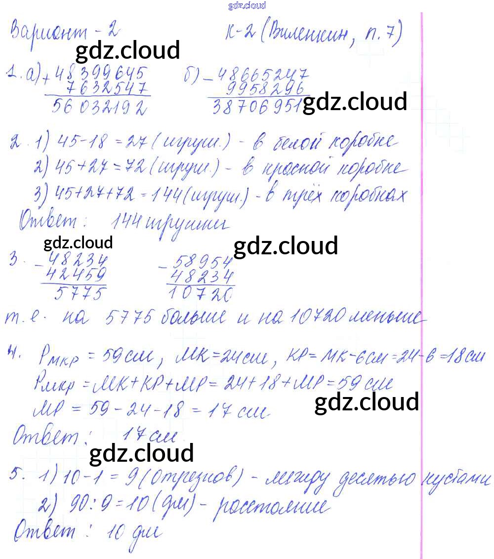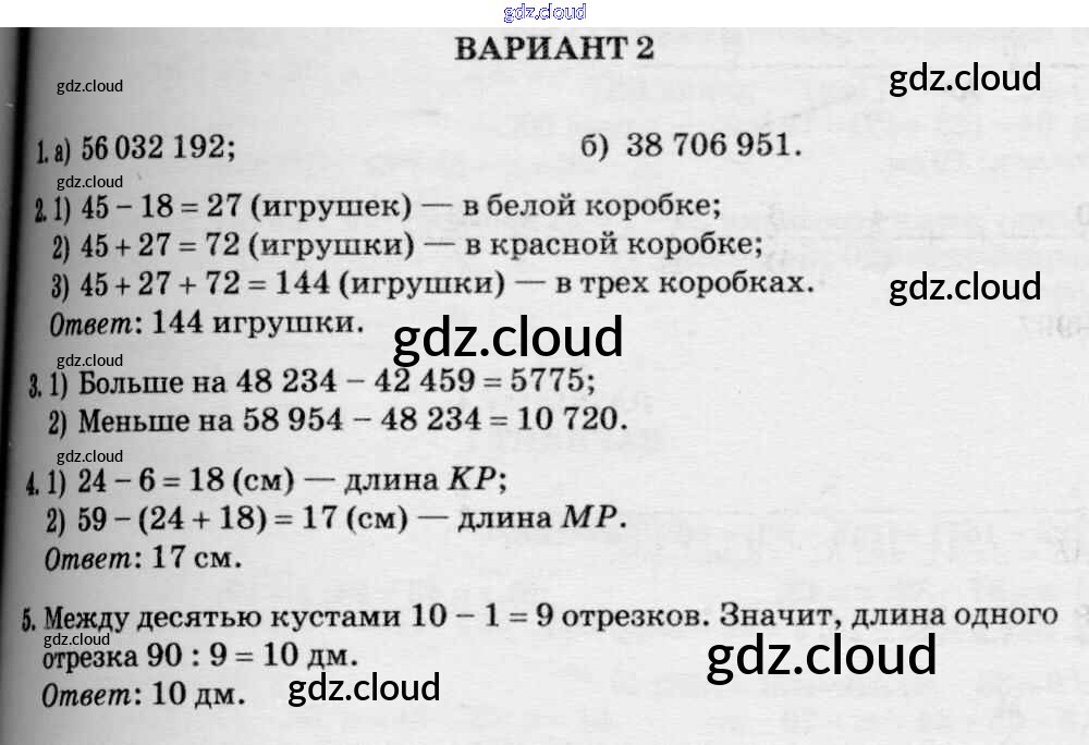 КР-2. Варианты Ответы к Контрольным работам к Виленкину по Математике 5 класс Дидактические материалы Чесноков    Академкнига