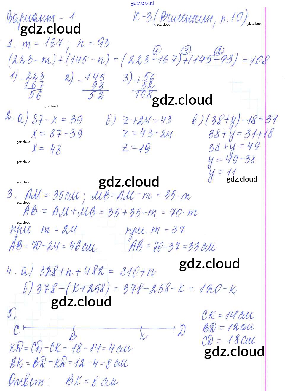КР-3. Варианты Ответы к Контрольным работам к Виленкину по Математике 5 класс Дидактические материалы Чесноков    Академкнига