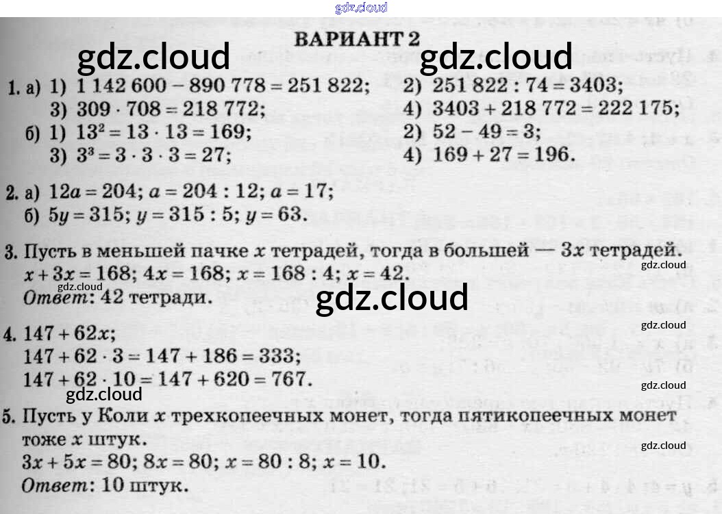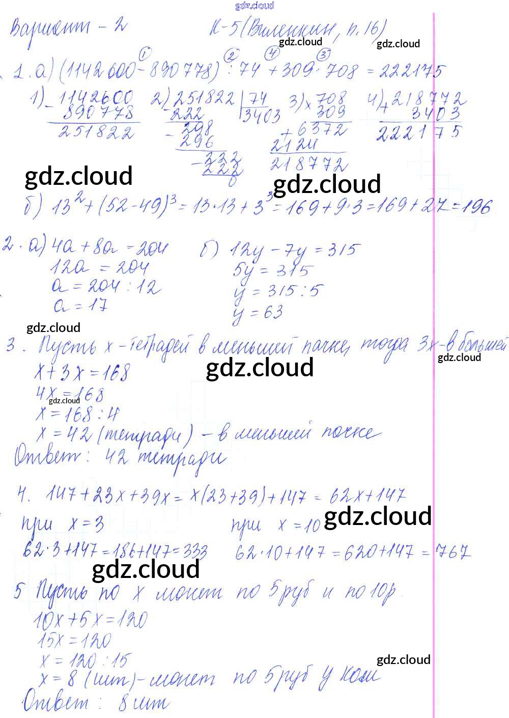 КР-5. Варианты Ответы к Контрольным работам к Виленкину по Математике 5 класс Дидактические материалы Чесноков    Академкнига