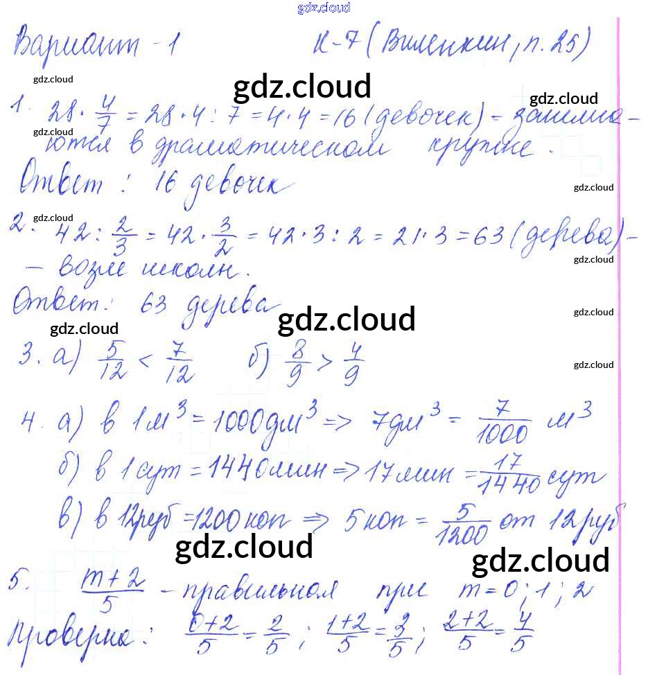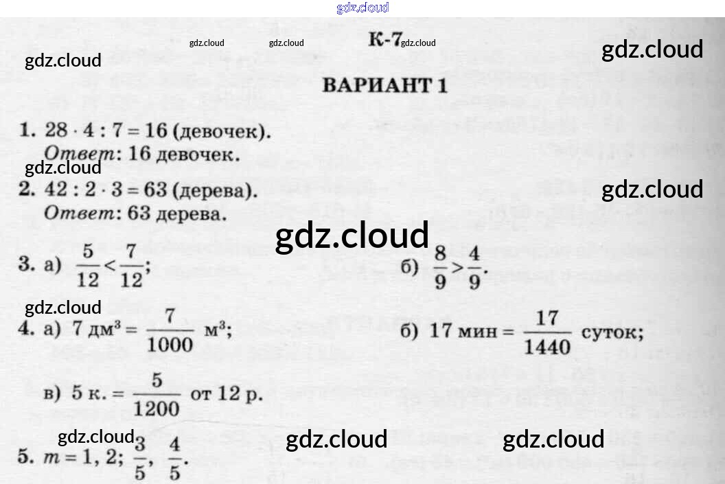КР-7. Варианты Ответы к Контрольным работам к Виленкину по Математике 5 класс Дидактические материалы Чесноков    Академкнига