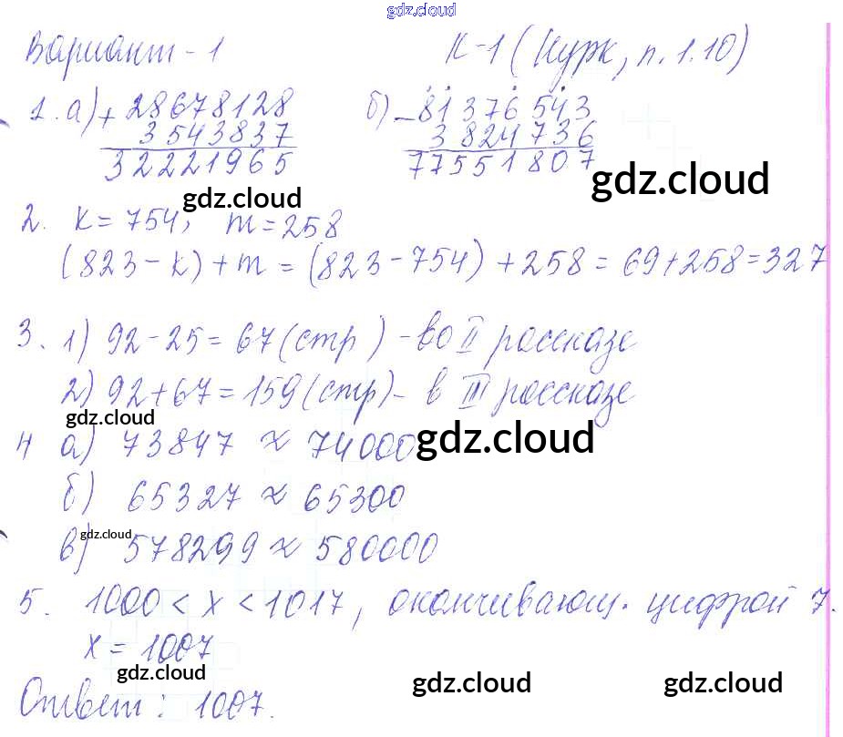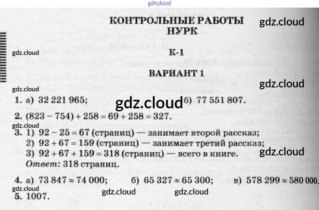 КР-1. Варианты Ответы к Контрольным работам к Нурку по Математике 5 класс Дидактические материалы Чесноков Академкнига