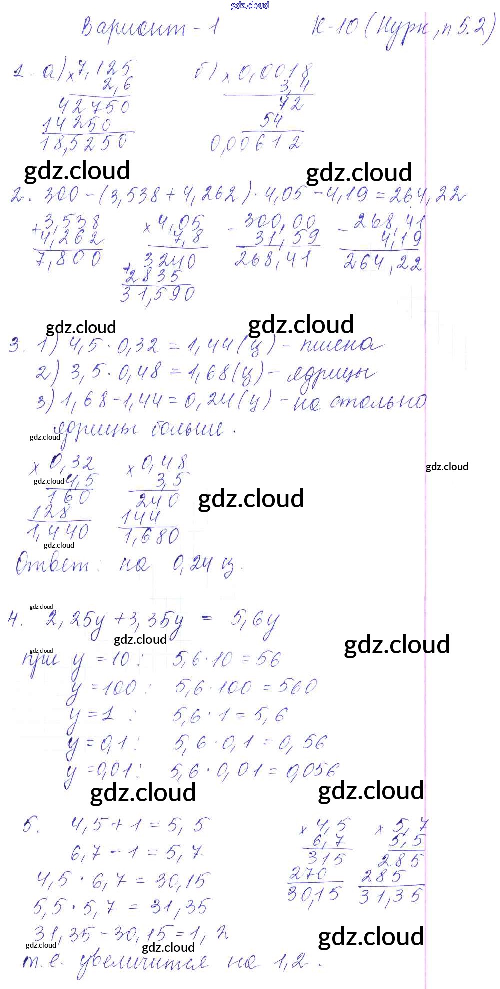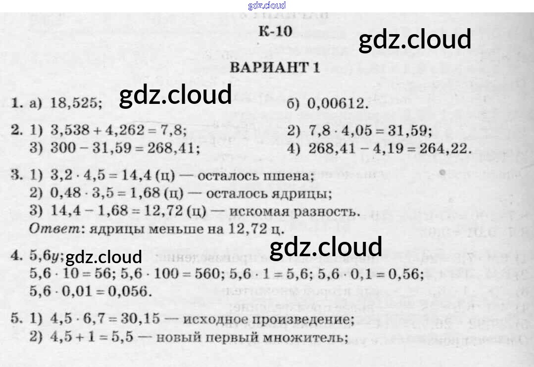 КР-10. Варианты Ответы к Контрольным работам к Нурку по Математике 5 класс Дидактические материалы Чесноков Академкнига