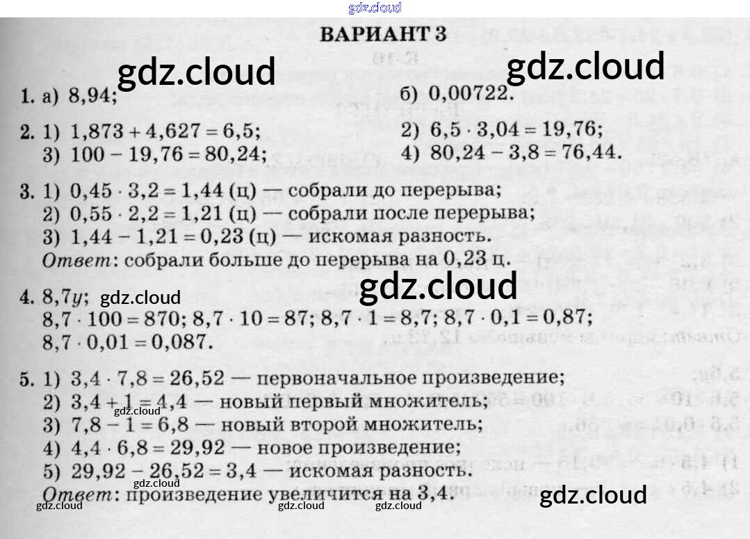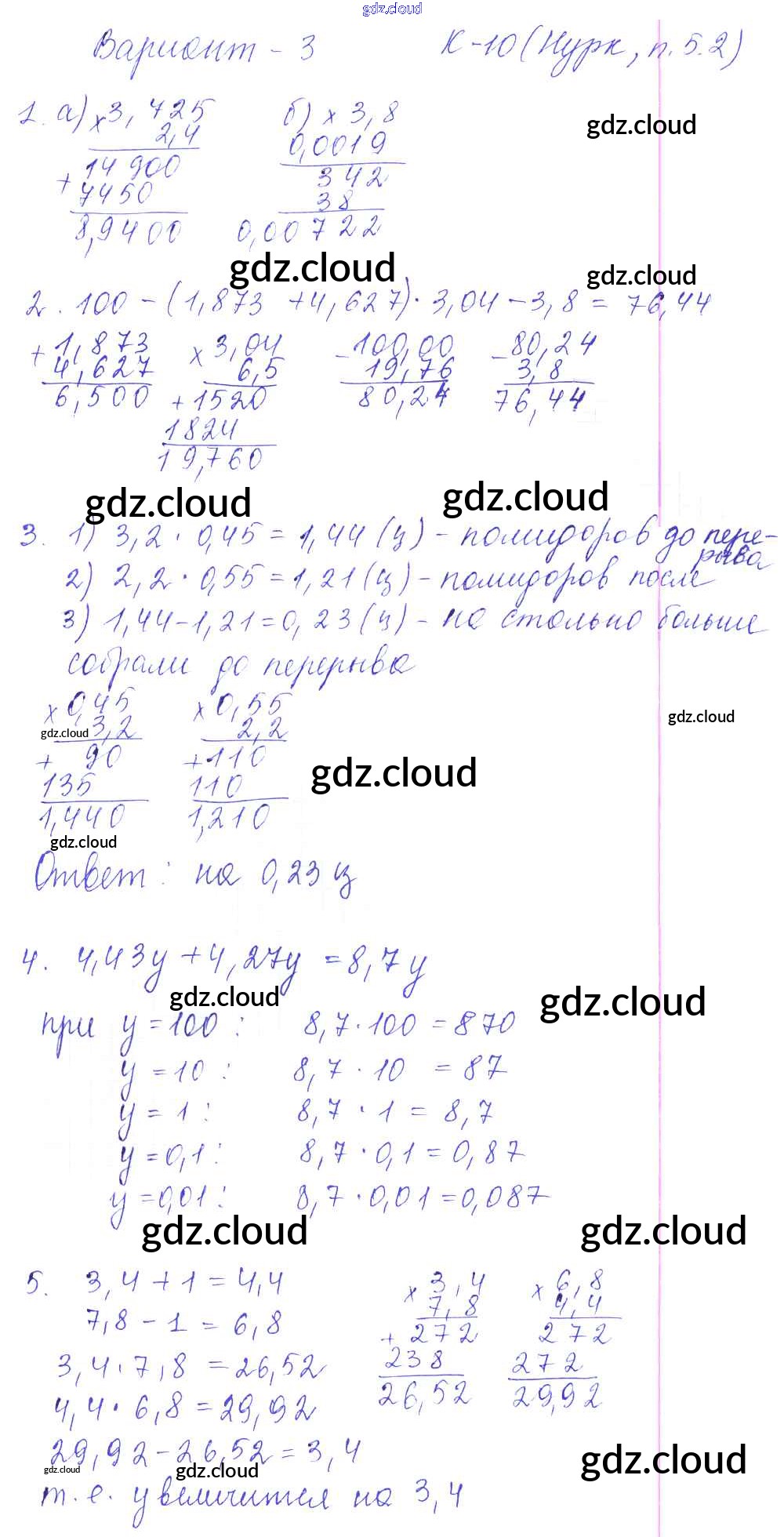 КР-10. Варианты Ответы к Контрольным работам к Нурку по Математике 5 класс Дидактические материалы Чесноков    Академкнига