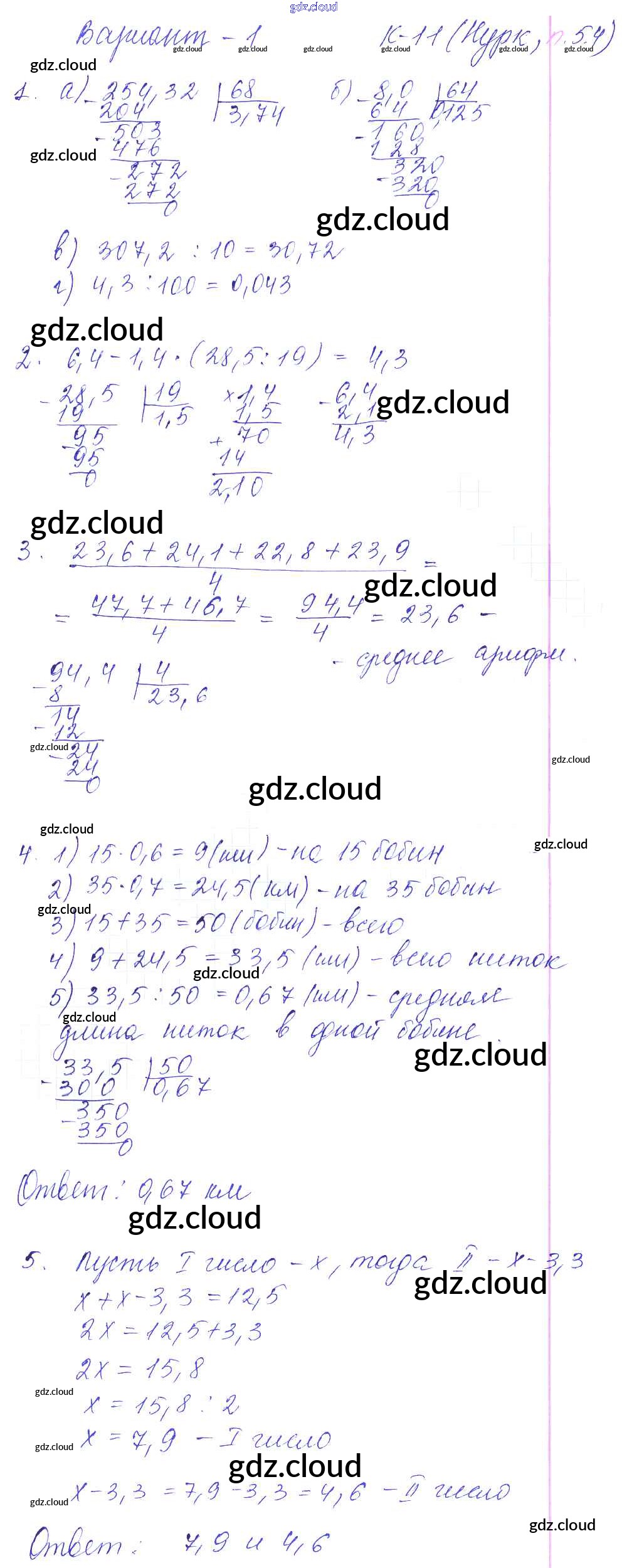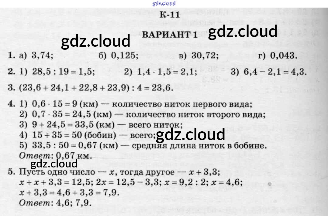 КР-11. Варианты Ответы к Контрольным работам к Нурку по Математике 5 класс Дидактические материалы Чесноков Академкнига
