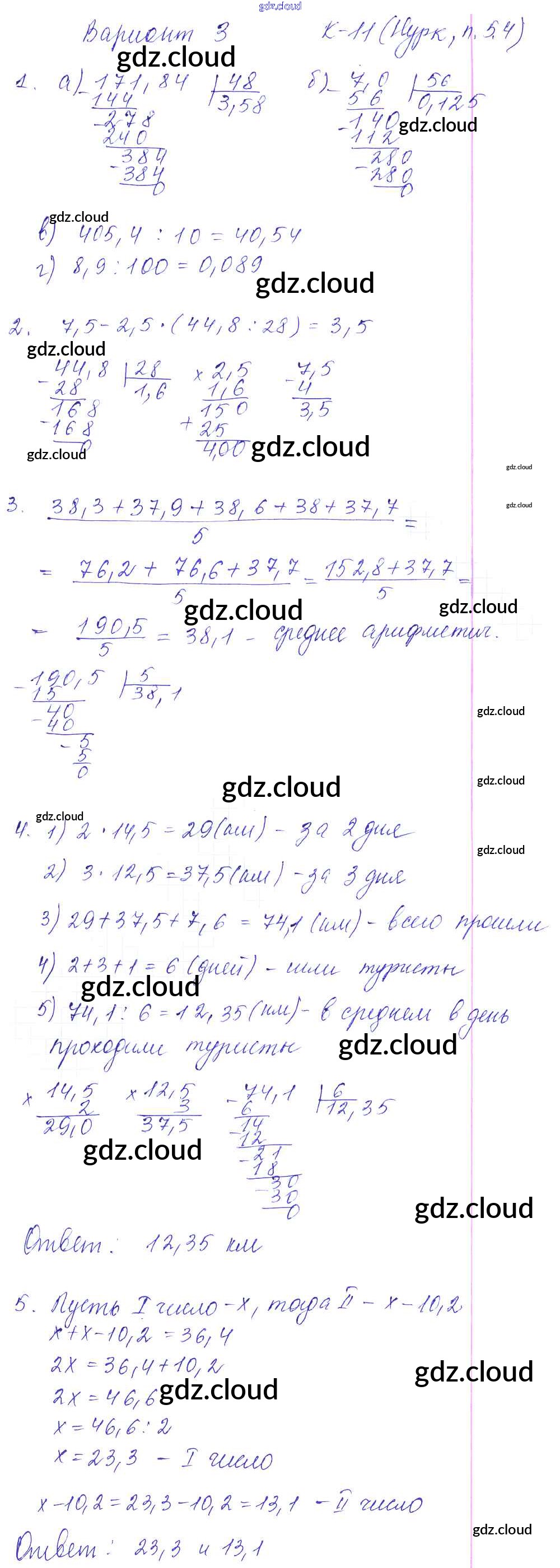 КР-11. Варианты Ответы к Контрольным работам к Нурку по Математике 5 класс Дидактические материалы Чесноков    Академкнига