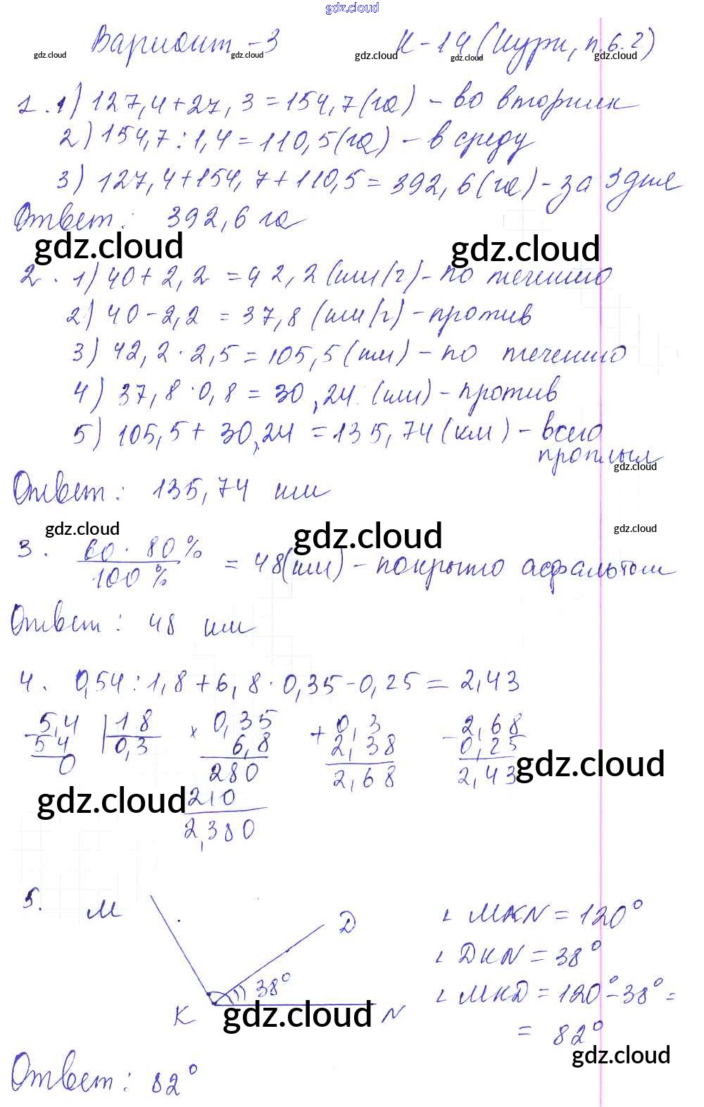 КР-14. Варианты Ответы к Контрольным работам к Нурку по Математике 5 класс Дидактические материалы Чесноков Академкнига