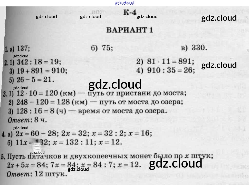 КР-4. Варианты Ответы к Контрольным работам к Нурку по Математике 5 класс Дидактические материалы Чесноков    Академкнига