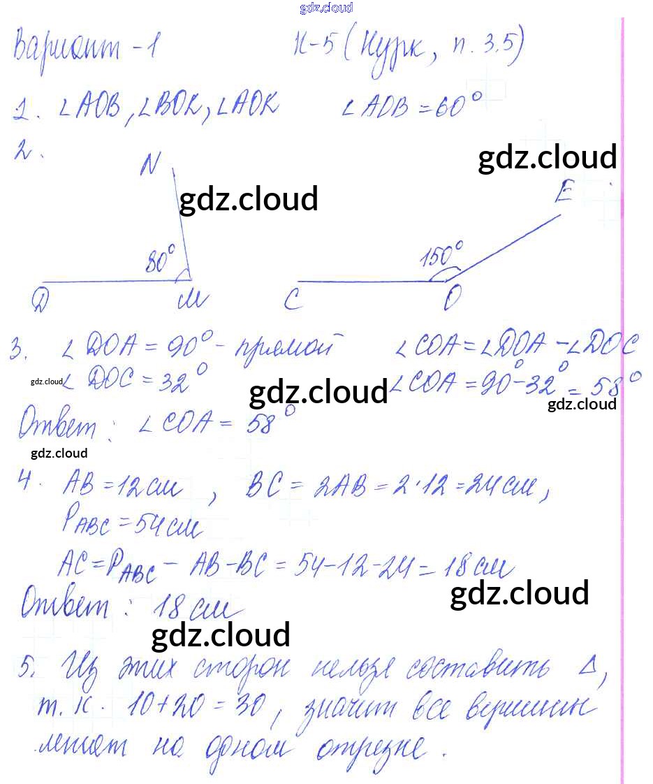 КР-5. Варианты Ответы к Контрольным работам к Нурку по Математике 5 класс Дидактические материалы Чесноков Академкнига