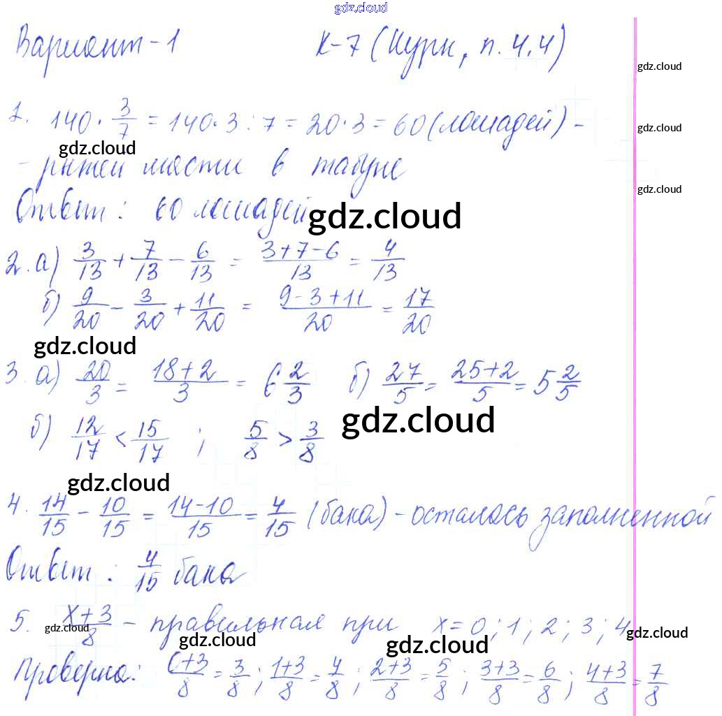 КР-7. Варианты Ответы к Контрольным работам к Нурку по Математике 5 класс Дидактические материалы Чесноков Академкнига