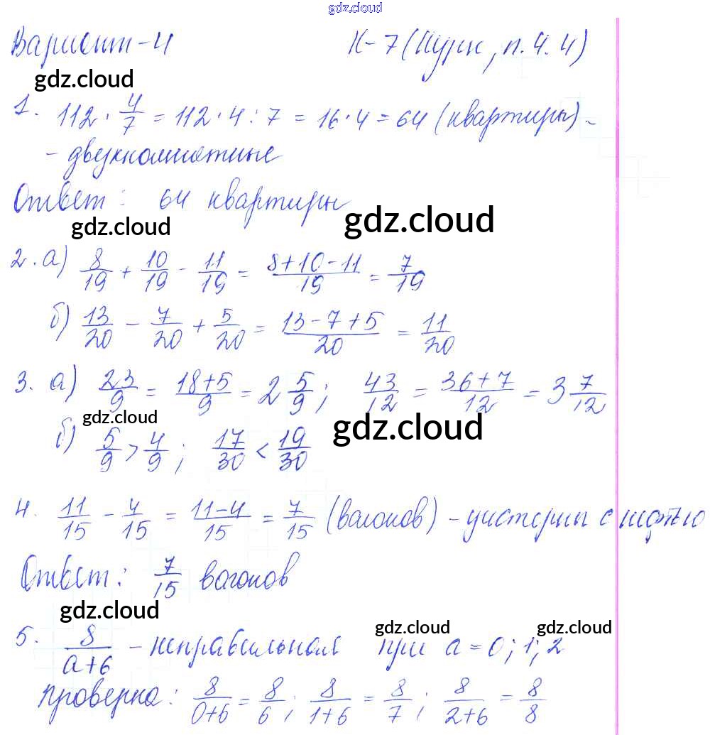 КР-7. Варианты Ответы к Контрольным работам к Нурку по Математике 5 класс Дидактические материалы Чесноков    Академкнига