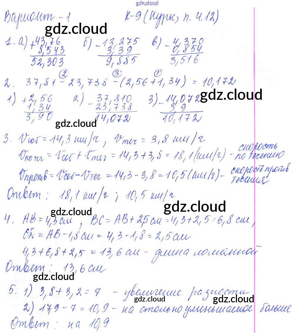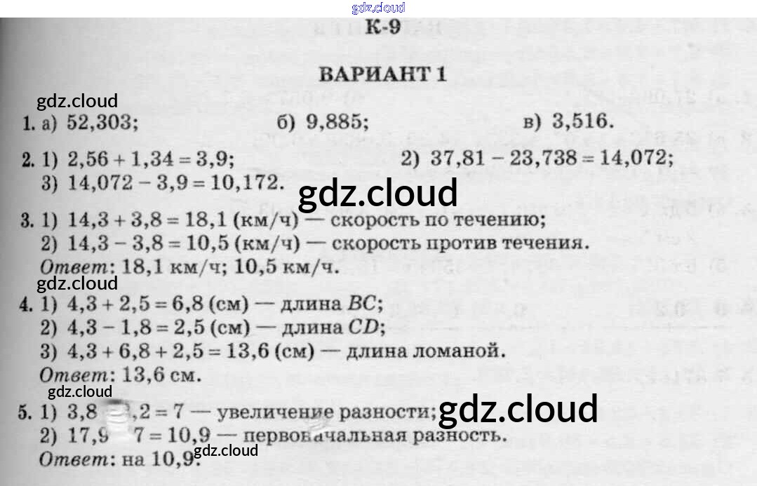 КР-9. Варианты Ответы к Контрольным работам к Нурку по Математике 5 класс Дидактические материалы Чесноков Академкнига