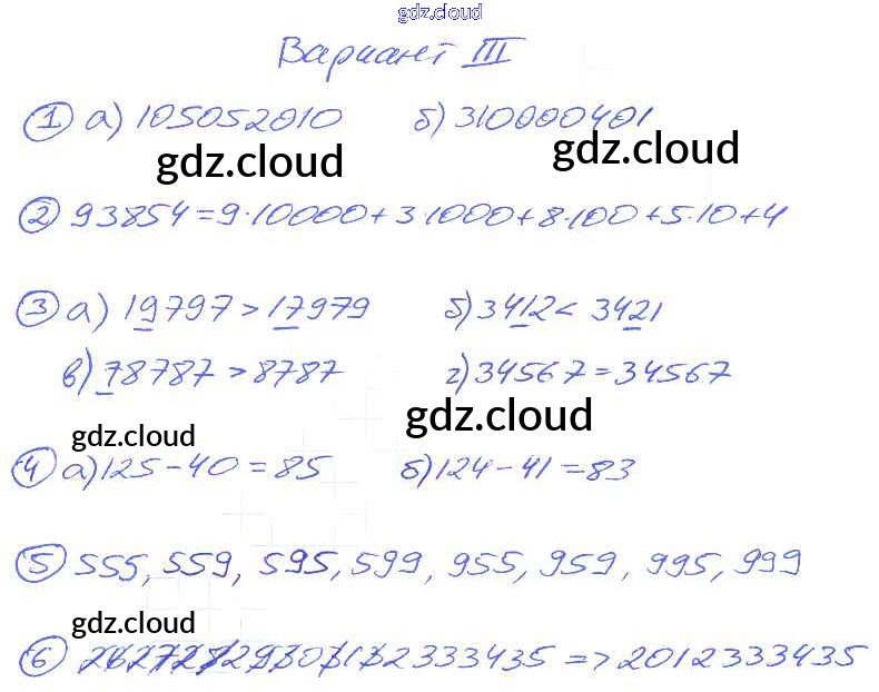 СР-1. Варианты Ответы к самостоятельным работам по Математике 5 класс Дидактические материалы Потапов МГУ - школе Просвещение