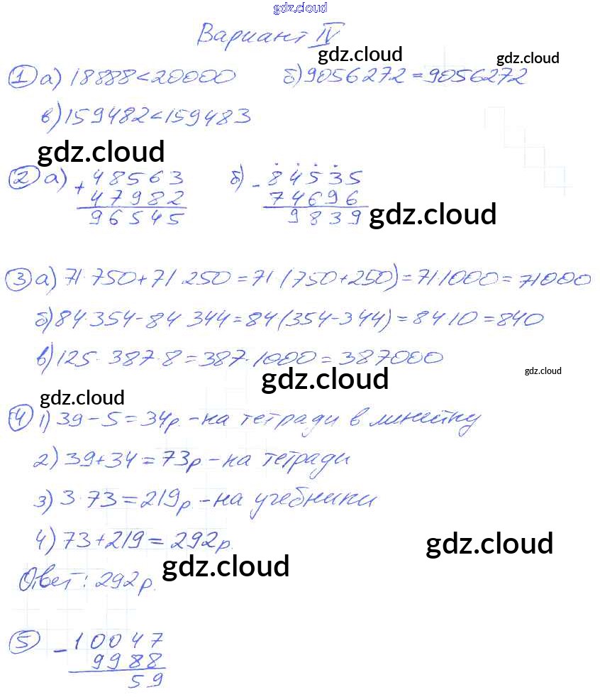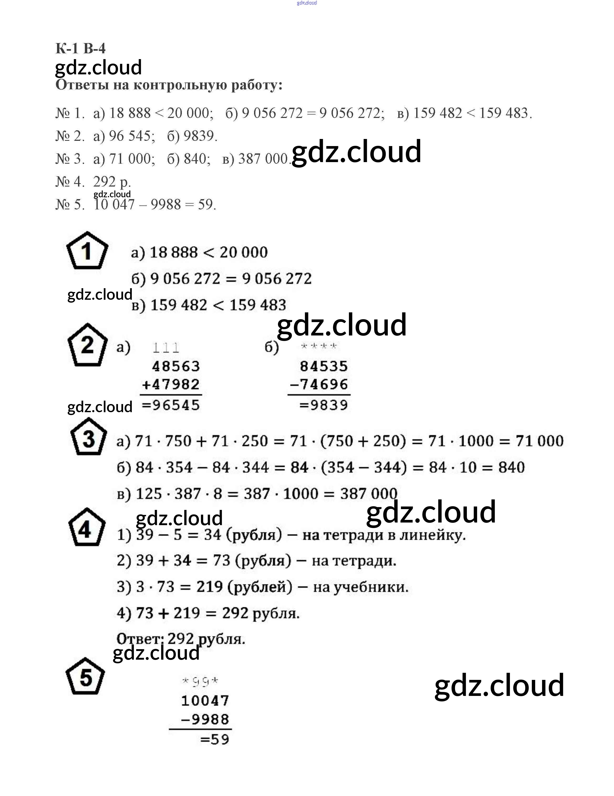 КР-1. Варианты Ответы к самостоятельным контрольным работам по Математике 5 класс Дидактические материалы Потапов МГУ - школе Просвещение
