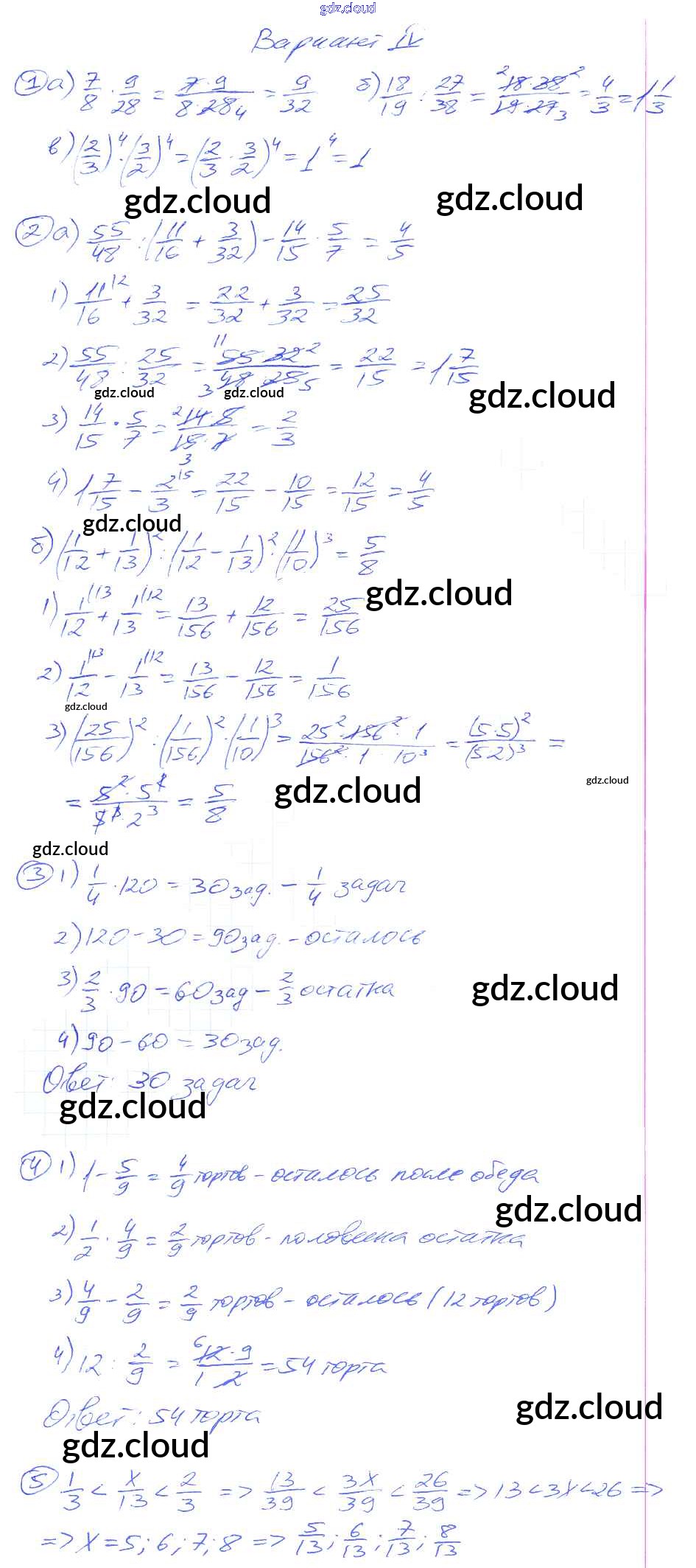 КР-7. Варианты Ответы к самостоятельным контрольным работам по Математике 5 класс Дидактические материалы Потапов МГУ - школе Просвещение