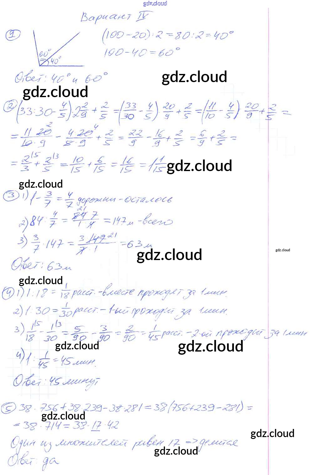 КР-9. Варианты Ответы к самостоятельным контрольным работам по Математике 5 класс Дидактические материалы Потапов МГУ - школе Просвещение