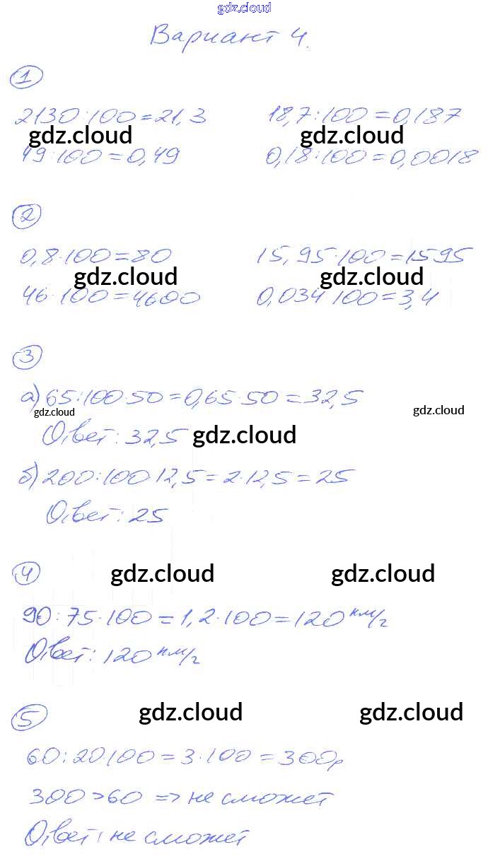 СР-46. Варианты Ответы к Самостоятельным работам по Математике 5 класс Дидактические материалы Рудницкая УМК Экзамен