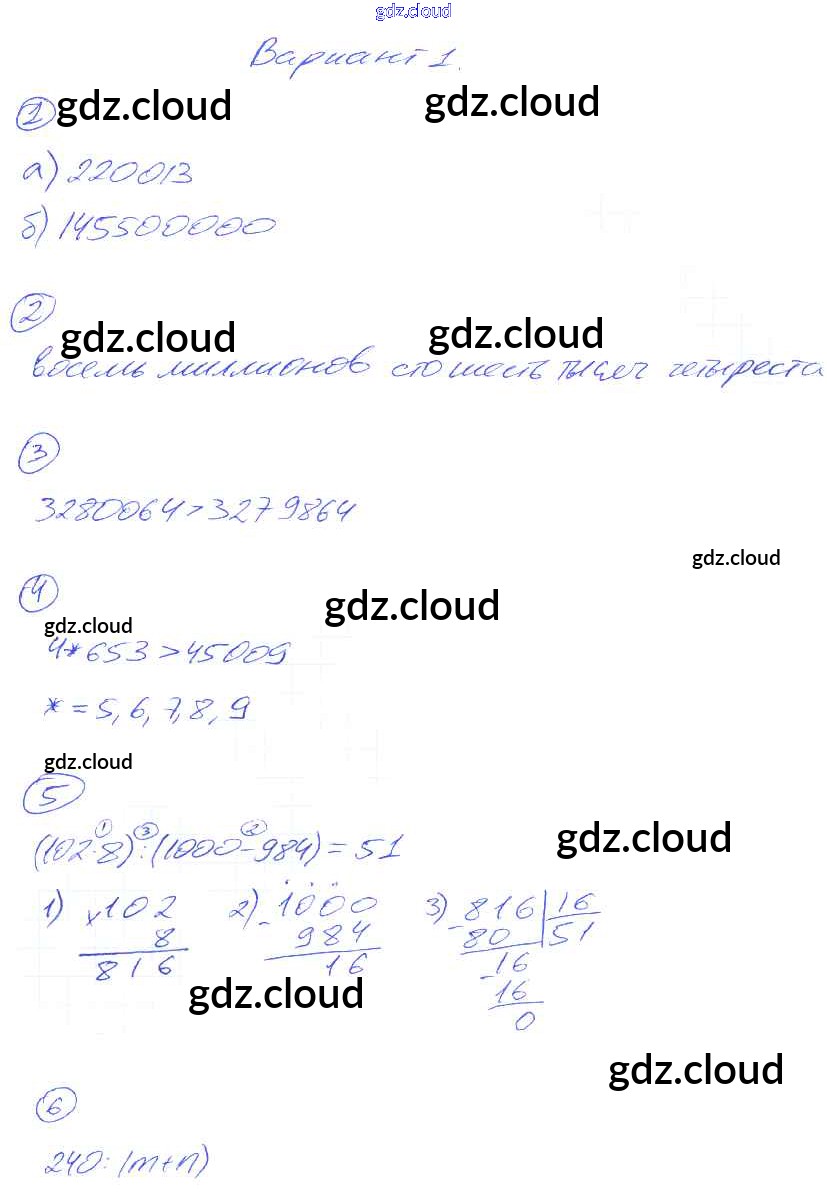 КР-1. Варианты Ответы к Контрольным работам по Математике 5 класс Дидактические материалы Рудницкая УМК Экзамен