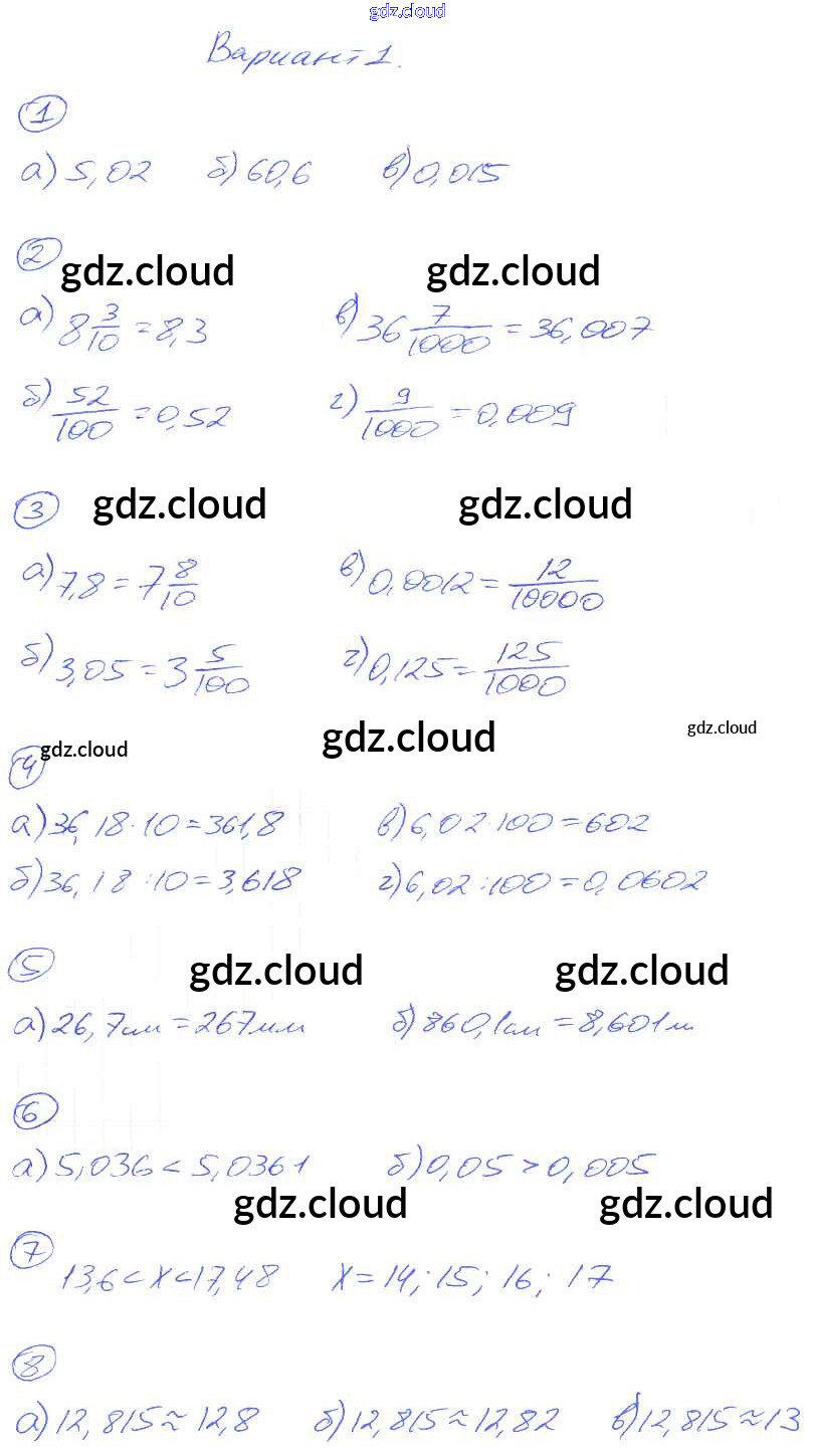 КР-11. Варианты Ответы к Контрольным работам по Математике 5 класс Дидактические материалы Рудницкая УМК Экзамен