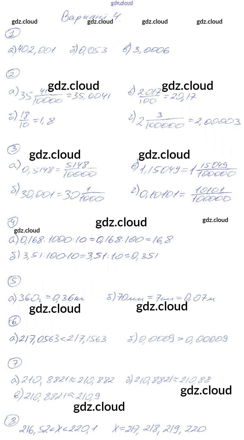 КР-11. Варианты Ответы к Контрольным работам по Математике 5 класс Дидактические материалы Рудницкая УМК Экзамен