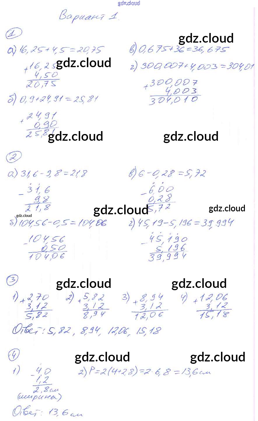 КР-12. Варианты Ответы к Контрольным работам по Математике 5 класс Дидактические материалы Рудницкая УМК Экзамен