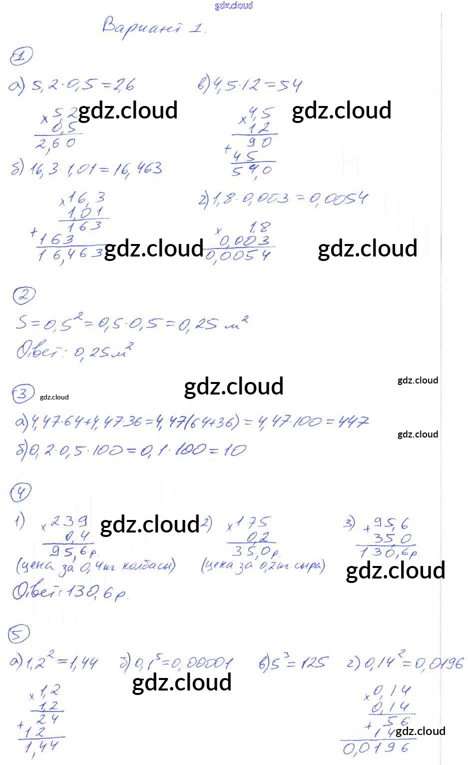 КР-13. Варианты Ответы к Контрольным работам по Математике 5 класс Дидактические материалы Рудницкая УМК Экзамен