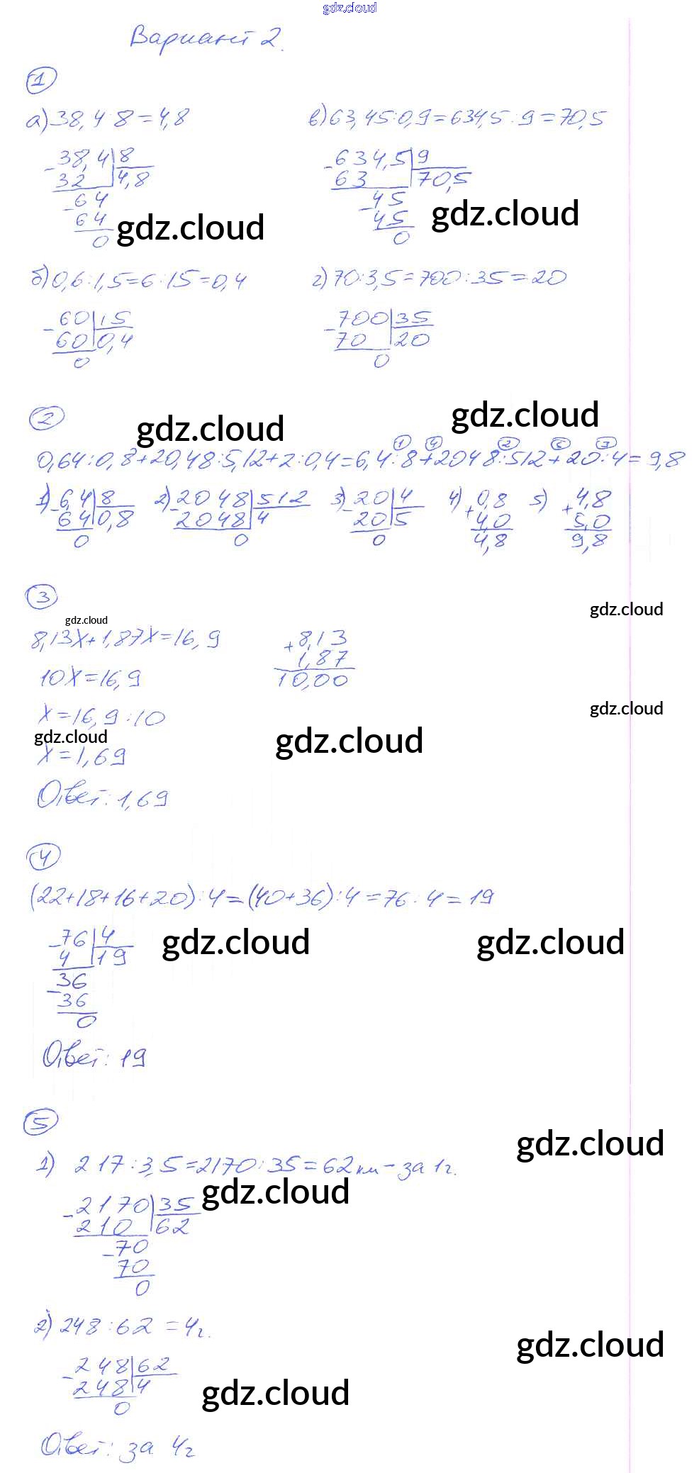 КР-14. Варианты Ответы к Контрольным работам по Математике 5 класс Дидактические материалы Рудницкая УМК Экзамен