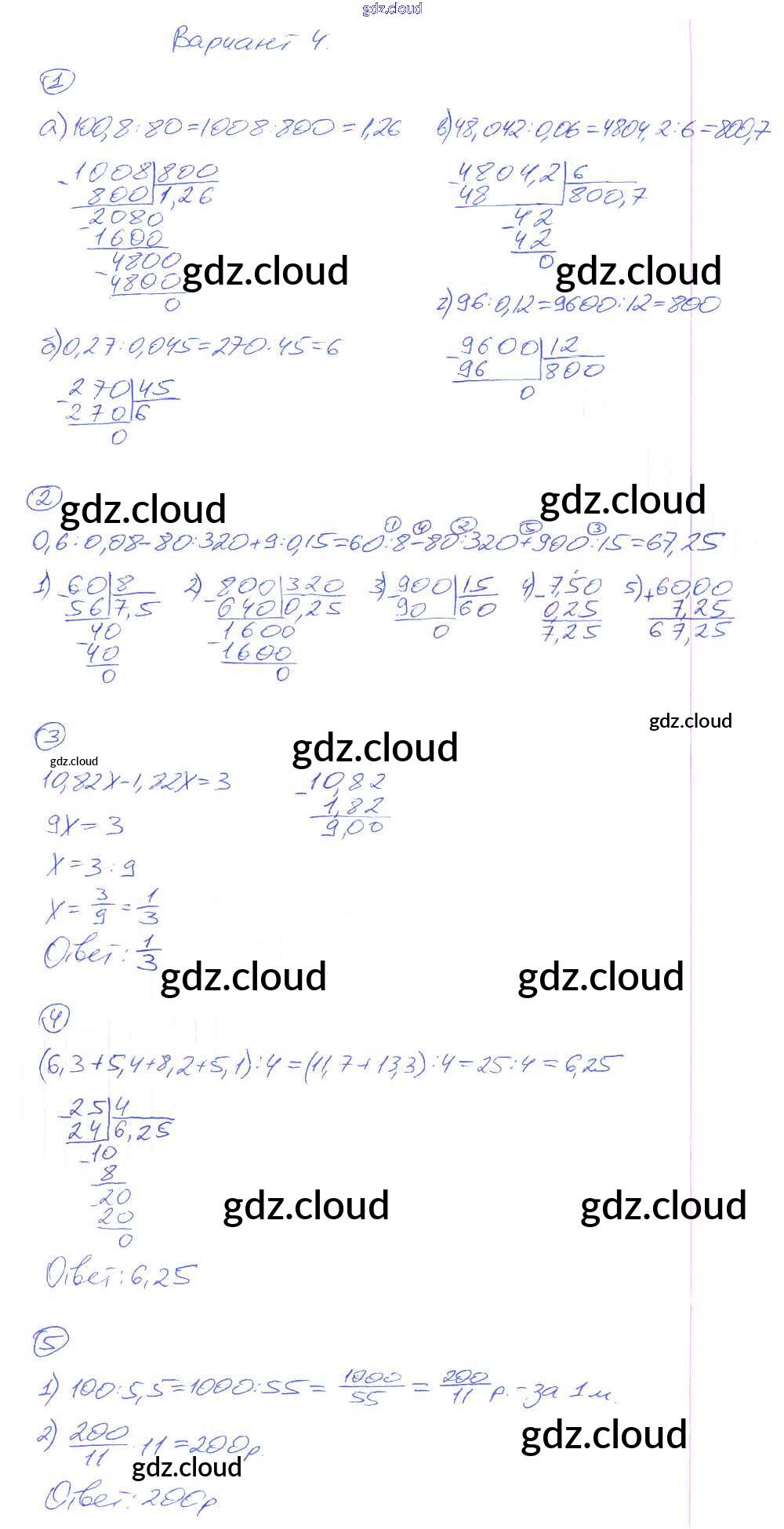 КР-14. Варианты Ответы к Контрольным работам по Математике 5 класс Дидактические материалы Рудницкая УМК Экзамен