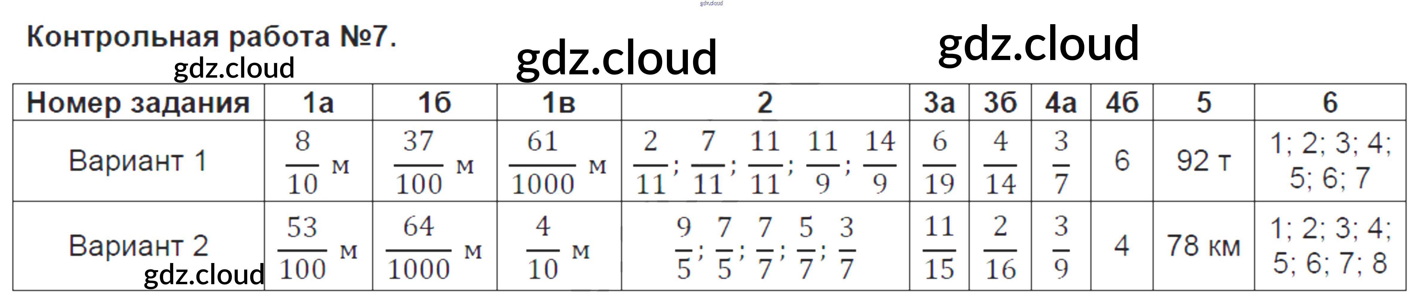 Ответ на задание КР №7 Контрольно-измерительные материалы (КИМ) Математика за 5 (пятый) класс Глазков, Ахременкова, Гаиашвили 2014